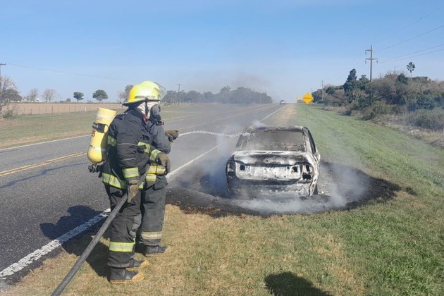 De inmediato los uniformados se dirigieron hacia el lugar indicado y al llegar al kilómetro 87 de la mencionada ruta, observaron que había un incendio en un vehículo.