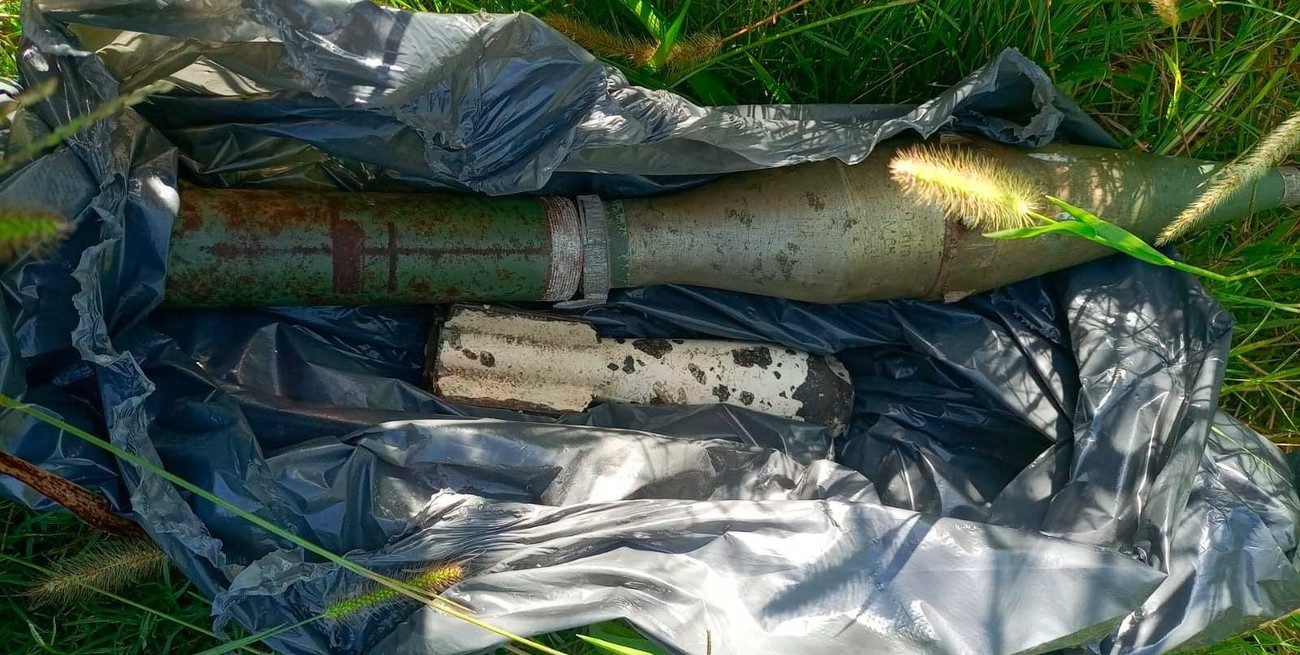 Durante los metros de escape, los jóvenes tiraron un bolso a unos pastizales el que minutos después fue encontrado. Para sorpresa de los oficiales dentro del bolso había una granada y un mortero.