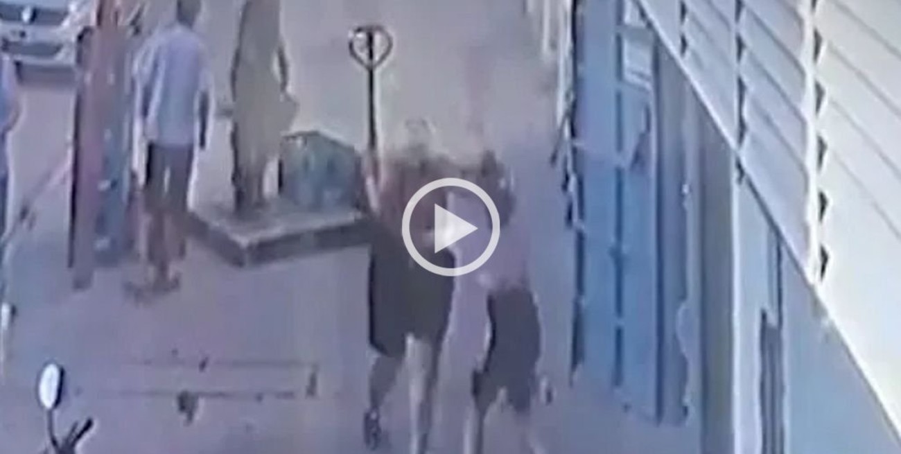 Un video -que ya circula por las redes sociales- muestra claramente a la agresora cuando se le acerca a la víctima y comienza a pegarle con el fierro. La denunciante se defiende con las manos y logra arrinconarla contra una pared, donde intercede un trabajador de seguridad privada para frenar el ataque.
