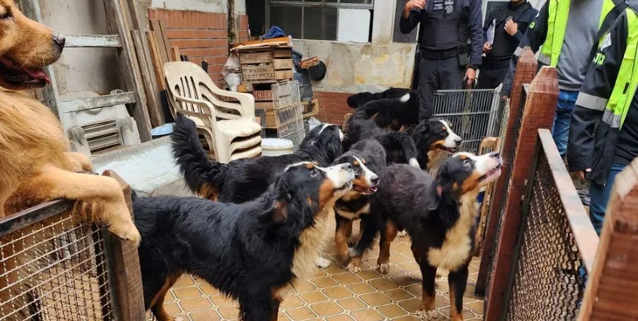 La redada encontró 14 perros de montaña de Bernese, ocho adultos y seis cachorros, una raza Jack Russell y dos Golden Retrievers.