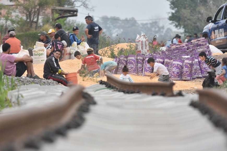Lo más preocupante es que muchos de los saqueadores continúan en el lugar embolsando el cereal derramado, contando incluso con el apoyo de vehículos (camionetas) para sacar el cargamento.
