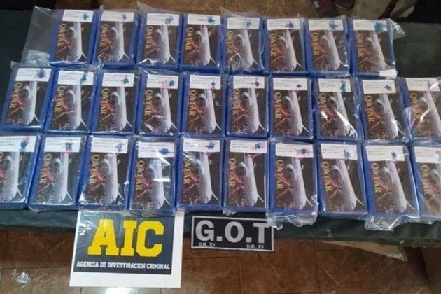 Y aunque él no estaba, los uniformados que entraron al inmueble encontraron 28 paquetes envueltos en cinta de embalar azul con la foto de un avión con la inscripción "Emirates" -bajo el cual se leía "QATAR"-. La droga estaba debajo de una cama de dos plazas, ubicada en una habitación contigua al comedor.