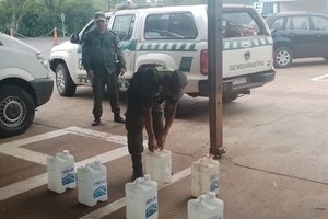 El descubrimiento de las sustancias ilícitas fue detectado por un can de la GNA que se alteró ante la presencia de seis bidones con una sustancia líquida transparente que desprendía un fuerte olor similar al del amoníaco.