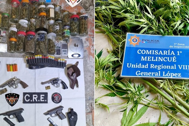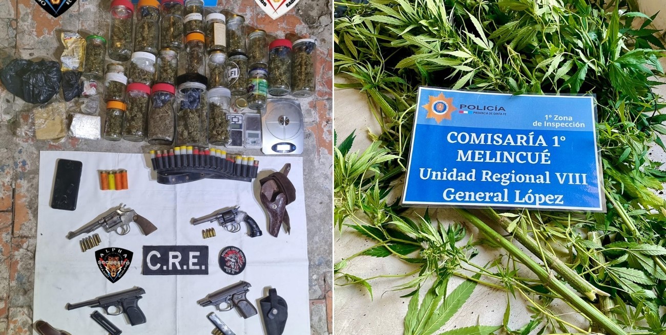 Como resultado de tres procedimientos, dos en la ciudad de Rosario y otro en Melincué, los agentes secuestraron material estupefaciente, armas de fuego, balanzas de precisión, dinero en efectivo y demás elementos.