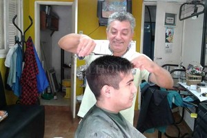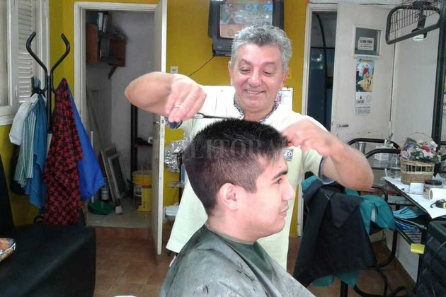 “Y bueno... acá estamos arrancando el martes con una sonrisa. Porque los clientes no tienen la culpa de lo que me pasó”, dice Leoncio sin perder ni un minuto en el corte de pelo que le está realizando a un muchacho.