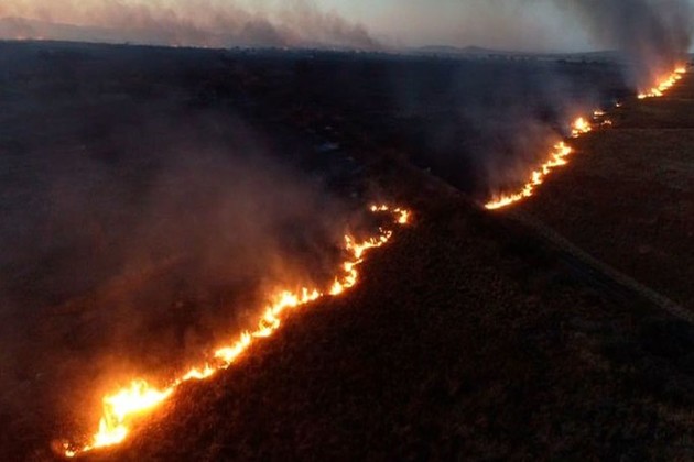 Un incendio forestal de considerables dimensiones se desarrolla este miércoles a la noche en campos aledaños a la autopista que une Córdoba y Villa Carlos Paz, en Malagueño, cerca Museo de la Memoria "La Perla".