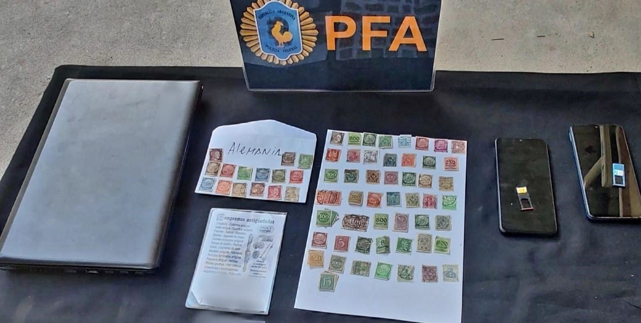 Durante el procedimiento se secuestraron 61 estampillas de carta con imágenes antisemitas, dos teléfonos celulares, una notebook y dos folletos de publicidad de venta de antigüedades.