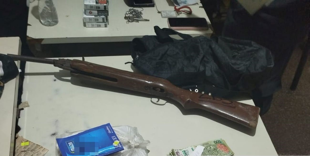 En su poder tenían el "botín": más de un millón de pesos, atados de cigarrillo y joyas. Además, los uniformados les incautaron un rifle de aire comprimido modificado para disparar proyectiles calibre .22.