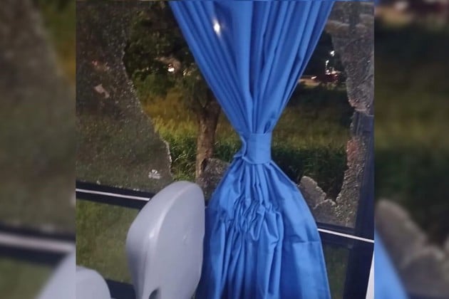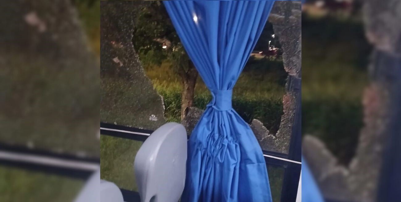 vandalismo colectivoLos restos de la ventanilla del micro tras el impacto. Foto: Gentileza