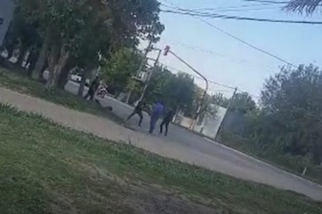 Según el registro fílmico de un transeúnte que justo pasaba por el lugar y escuchó gritos, se ve que un hombre increpaba a otro que estaba junto a una mujer mientras otra había quedado enfrente de la parada de colectivos de Ruta Nacional Nro. 11 y Roque Sáenz Peña.