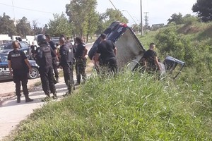 Fue en esas circunstancias que el conductor del patrullero (una camioneta), perdió el control del vehículo y terminó cayendo al zanjón ubicado en calle Pellegrini al 3900, a pocas cuadras de la cancha de Unión.