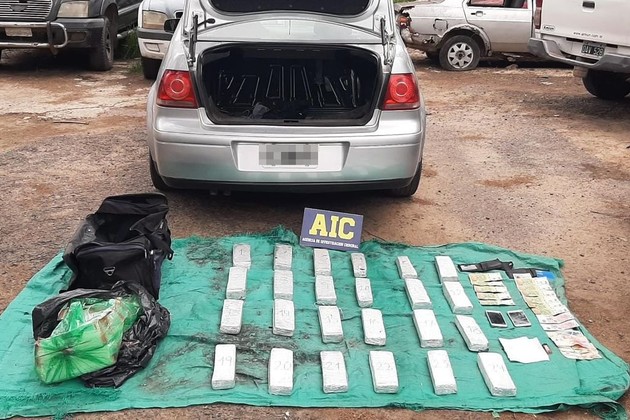 A propósito, refirió que el cargamento "podría estar vinculado puntualmente con dos personas vinculadas al narcotráfico", una de apellido Casco -que se encuentra prófugo- y otro sería Calderón -detenido el año pasado con 191 kilos de marihuana-. La labor estuvo a cargo de la policía provincial que "secuestró en un auto 24 panes de marihuana que son 16 kilos".