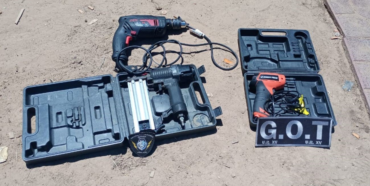 Lo primero que pudo confirmarse como robado fueron 2 atornilladores Daewo color naranja y negro y 1 amoladora marca Stihl color naranja.