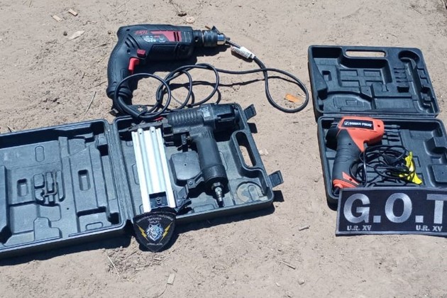 En ese sentido, un sujeto contó que había comprado herramientas eléctricas a otra persona, que después a su vez las vendió y que quería colaborar con la policía. Por tal motivo, finalmente la requisa recayó en el cruce de Belgrano con las vías férreas –Barrio Basualdo- donde con la autorización correspondiente los efectivos ingresaron y encontraron un soldador de estaño anaranjado y negro, marca Dowen Pagio, en su estuche, una clavadora neumática de color negra, marca BTA en su estuche y un taladro de mano, de color negro, marca Skil, todos elementos robados en el mencionado taller de la Escuela Eudocio Giménez.