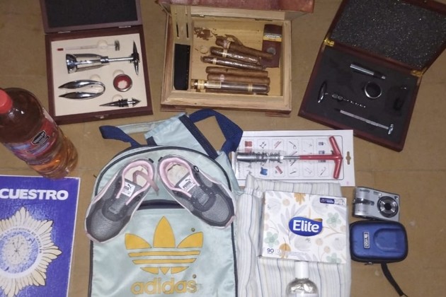 Los uniformados pudieron averiguar luego que los elementos sustraídos habían sido vendidos en un domicilio vecino, donde poco después pudieron recuperar: una bolsa de tela de color blanca y marrón, una caja de madera forrada en cuero marrón con el grabado de un mapa antiguo y un higrómetro de metal con siete habanos y un cortacigarros marca "Cohiba" adentro, un estuche de madera color marrón oscuro con termómetro, pico vertedor, tapón, anillo y sacacorchos, todo en metal color plata y plástico negro; una caja de madera color marrón oscuro conteniendo un termómetro, sacacorchos, un corta cápsula de vinos, un anillo recoge gotas de botellas y un tapón metálico, una cámara de fotos marca "Sanyo" de color gris en estuche azul, una llave saca bujías de 5/8 en estuche, una botella de agua saborizada marca "Sierras de los padres", tres remeras de color amarillo, azul y una blanca.