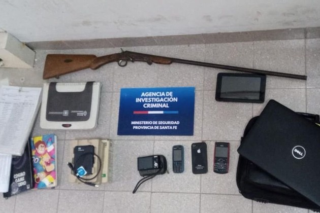 Durante el operativo, se secuestraron varios teléfonos, un disco rígido externo, una cámara digital, una notebook, una netbook, un gabinete de PC y una escopeta, entre otras cosas.