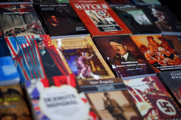 El hallazgo dio lugar a la intervención de la Policía Federal Argentina, que constató, entre otros objetos, un rifle, un cuadro de Adolf Hitler y libros de su autoría, así como diferentes publicaciones y videocasetes con temática negacionista del Holocausto. Crédito: Reuters/Agustin Marcarian