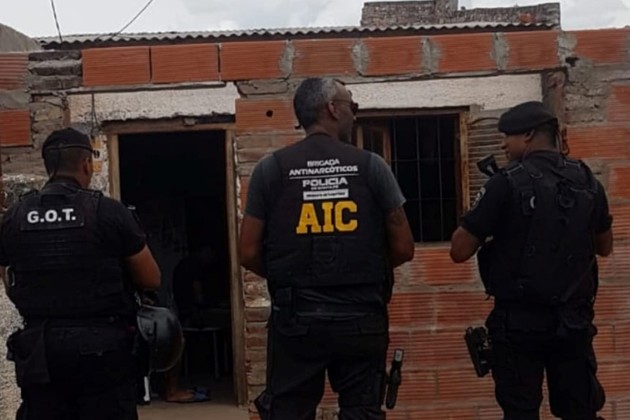 Los agentes antinarcóticos, contaron con la colaboración de personal policial del Departamento Región Operativa (Tostado), también perteneciente a la AIC y del Grupo de Operaciones Tácticas de Unidad Regional XII, para la ejecución de las medidas legales ordenadas por el Juzgado Federal interviniente. Crédito: AIC