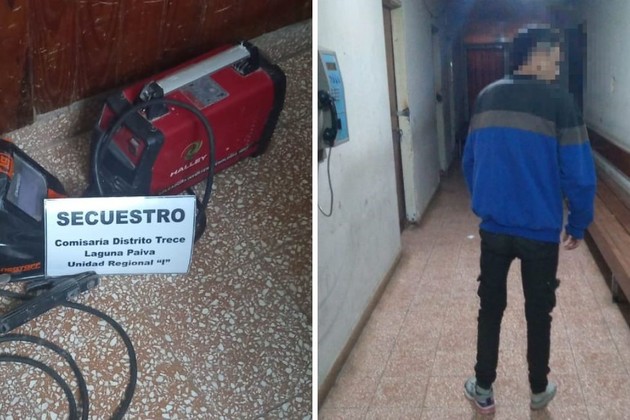 En dicha circunstancia el malviviente reveló que los elementos robados estaban en un descampado en calle San Martín y las Heras. Una vez en este último lugar se logró recuperar una máquina de soldar inverter color rojo marca Halley con sus respectivos cables y pinzas una máscara de soldar color negro y naranja.