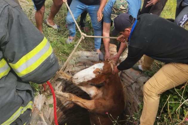 Por lo expuesto, procedieron a colocar cuerdas por debajo de las patas delanteras del animal, realizando un nudo mariposa o también llamado esposas, y con ayuda de vecinos aledaños al lugar, lograron así la extracción del caballo.