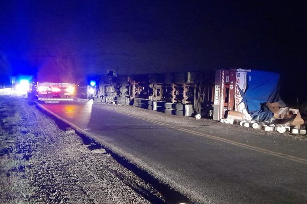 Se recomienda circular con precaución por la zona porque el camión aun permanece volcado en la ruta, mientras se aguarda el arribo de una grúa para poder removerlo.