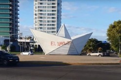 Este domingo la famosa escultura de la costanera de la ciudad ubicada en el sur de la provincia de Santa Fe se encontraba marcada por la leyenda que haría alusión a la ola de hechos de violencia. Ya fue repintado.