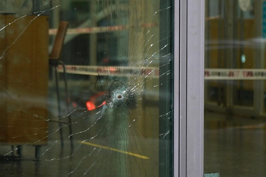 Al menos 4 proyectiles impactaron en los vidrios de la sucursal del banco. No hubo heridos, solamente daños materiales.