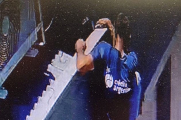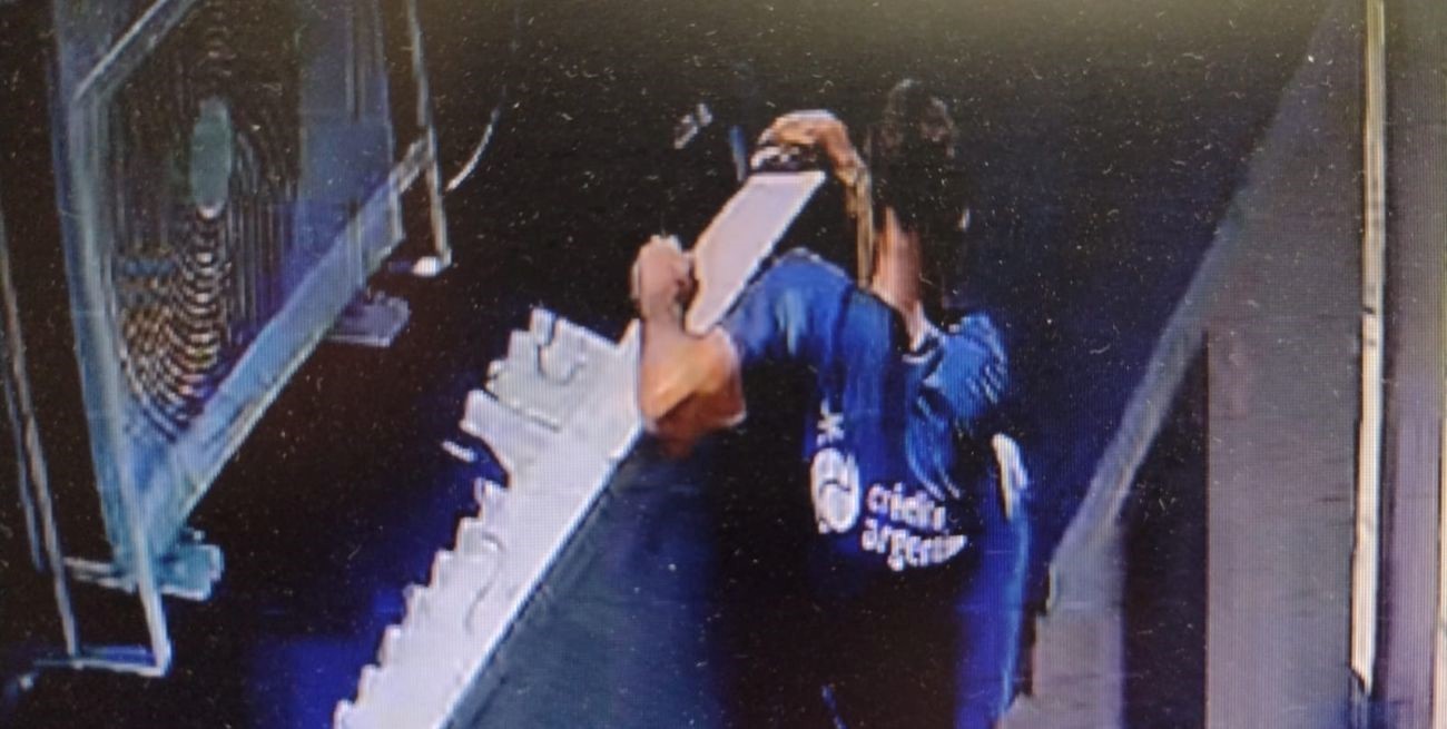 En las imágenes se puede observar como el malviviente vuelve a salir por donde había entrado. Ya tenía el botín en su poder, una bicicleta que pudo bajar con cuidado hasta la vereda luego de atarla con un cable que encontró en el lugar.