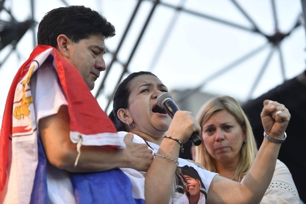 "Fernando amaba a su novia, eran felices y tenían proyectos. Él está entre nosotros y nos da fuerza y Luz. Queremos que paguen lo que le hicieron", dijo en el escenario la madre de Fernando, acompañada por su marido Silvino Báez.