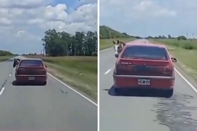 Las imágenes, que se volvieron virales en las últimas horas, muestran a Renault 19 marchado y dentro de él un caballo, que sacaba la cabeza por la ventanilla.