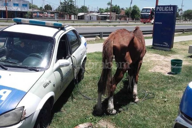 El procedimiento se realizó en el km 155 de la autopista Santa Fe Rosario, donde los uniformados detuvieron al ocupante de un carro tirado por un equino que presentaba una evidente lesión en la cadera.