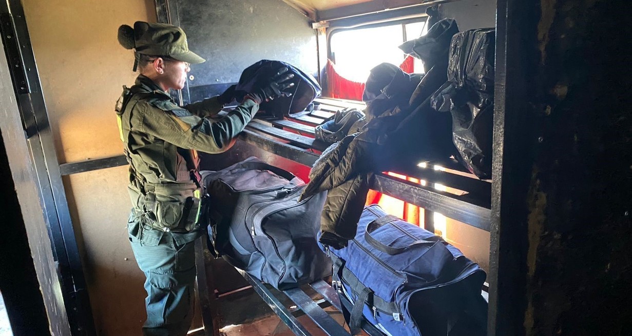 Los gendarmes ingresaron al predio donde había un transporte de pasajeros en desuso, donde vivían los tres trabajadores informales. Foto: Prensa GNA