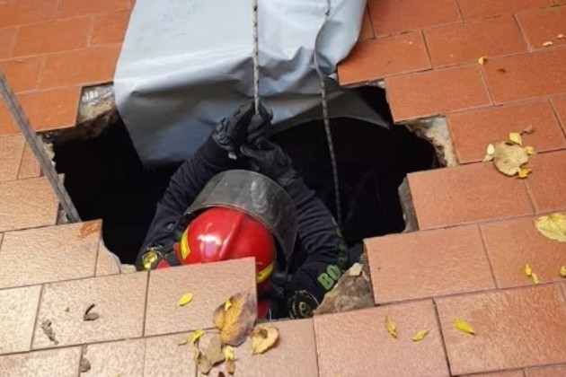 A las 11.57, la central telefónica 911 recibió un llamado indicando que una persona había caído dentro de un pozo.