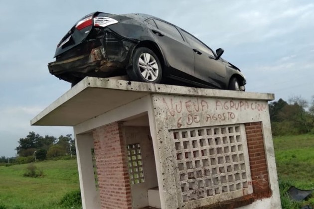 Lo particular del hecho es que el rodado quedó estacionado por encima de la estructura. El conductor del automóvil sería un agente de la policía. Se investigan las causas que provocaron el incidente.