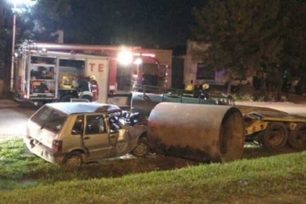 El hecho sucedió precisamente en el acceso del tránsito pesado Uncal al 300, de dicha localidad. Allí, un hombre a bordo de un Fiat Uno, aparentemente, reventó un neumático y perdió el control de su vehículo. El incidente provocó que se desviara de la calzada pavimentada hacia la banquina e impactara de lleno con un acoplado tipo tanque y maquinaria de construcción.