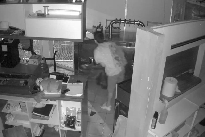 El malviviente hizo varios viajes para sacar del lugar su botín: un televisor de 52 pulgadas, una notebook, una tablet y un poco de dinero en efectivo (apenas unos cientos de pesos). También se llevó botellas de todo tipo de aperitivos. Se tomó su tiempo. La maniobra duró aproximadamente diez minutos. Posiblemente acopió todo en el pasillo, donde había dejado su vehículo, antes de emprender la huida.