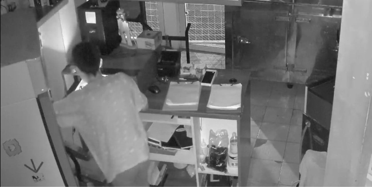 Quedó grabado por la cámara de seguridad del negocio, que desde hace doce años ofrece al público comida y bebida.