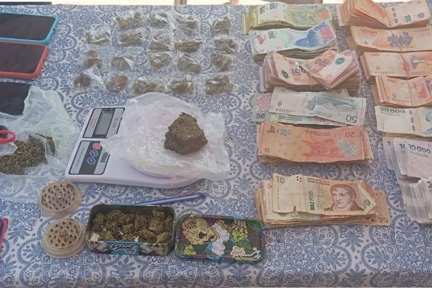 Se incautaron más de 830 mil pesos, presuntos estupefacientes, herramientas varias, una TV, una consola de videojuegos, una bomba de agua y artículos que serían mal habidos.