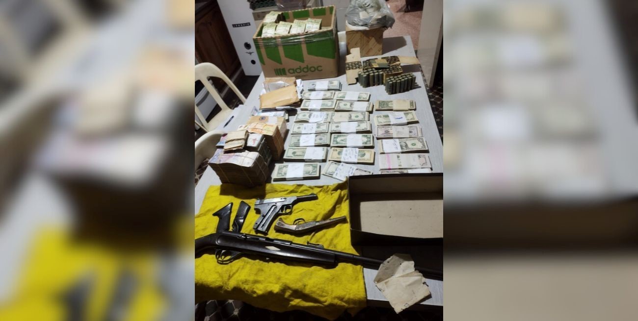 Agentes policiales secuestraron 306.390 dólares; 23.723.340 pesos; y 4.320 euros, además de armas. Foto: Prensa Gobierno
