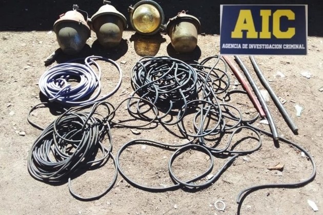 Los agentes ingresaron al predio, y hallaron una gran cantidad de elementos, que fueron puestos a disposición de la Justicia. Entre otras cosas, secuestraron 20 matafuegos de diferentes marcas (en su mayoría vencidos); cuatro faros de alumbrado público; 3 pistolas de aire comprimido tipo réplica; 1 pistola calibre 380, con dos cargadores y 16 municiones del mismo calibre; una escopeta calibre 12/70 con 6 cartuchos del mismo calibre; una bobina con cable coaxil envainado de la firma Telecom; una bolsa de arpillera que contenía alrededor de 40 kilos de cobre limpio; otras 2 bolsas de arpillera que tenían cables de diferentes tipos y tamaños, que fueron reconocidos por personal de la EPE como los que utilizan para las conexiones subterráneas, con un peso de 102 kilos; y un equipo DVR.