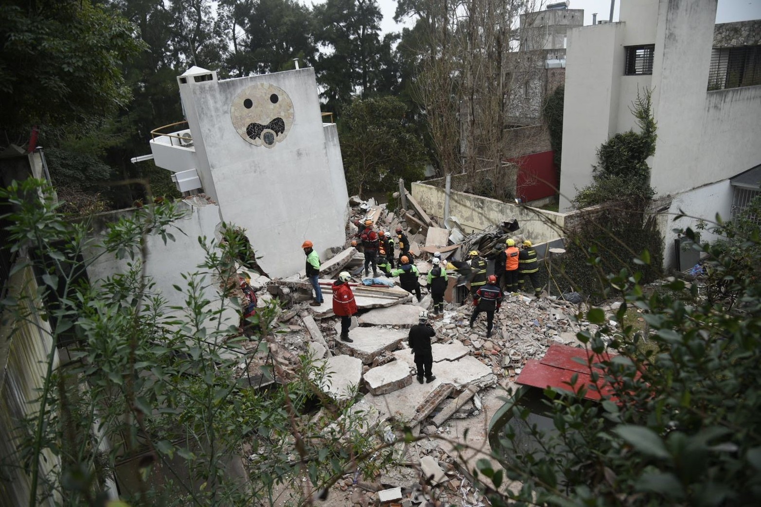 1 / 7 Una casa de tres piso se desplomó en la noche del domingo en Rosario . Arduas tareas para salvar a personas atrapadas. Foto: Marcelo Manera