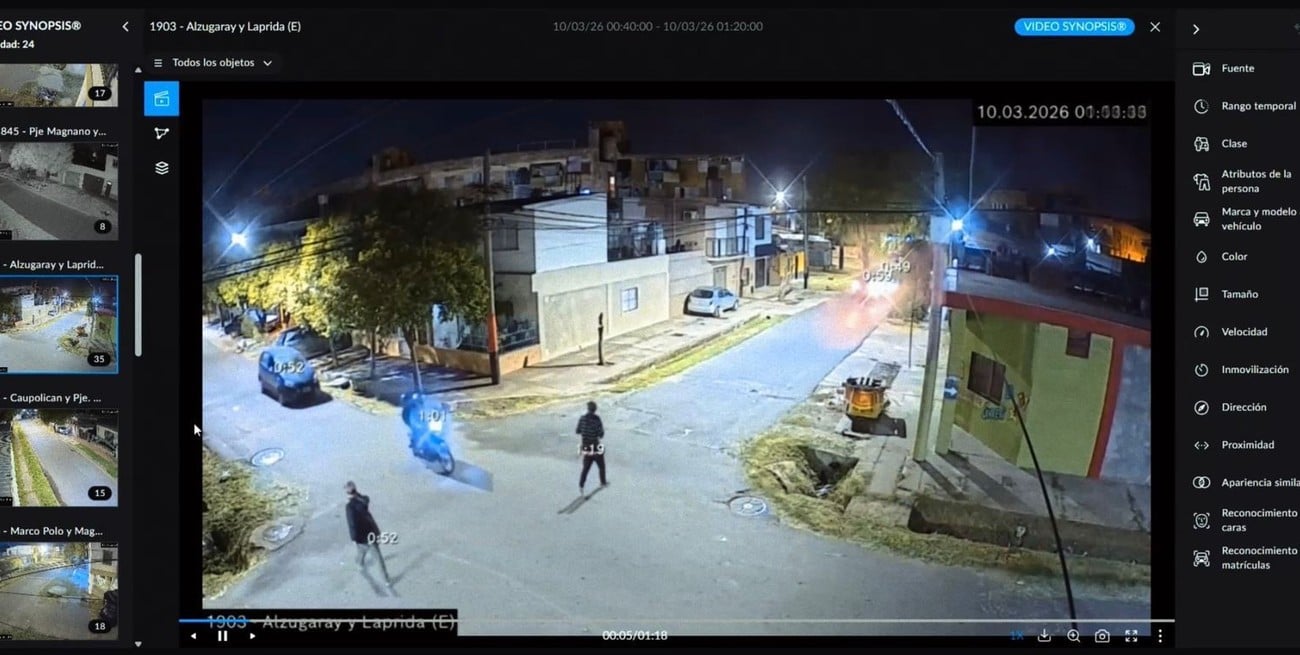 La clave de la pesquisa estuvo en detectar un patrón de desplazamiento. Los operadores del sistema comenzaron a revisar imágenes en las cámaras ubicadas en distintos cruces cercanos -Laprida y Patricios, Frías y Laprida, y Alzugaray y Laprida- mediante herramientas de búsqueda inteligente que permiten filtrar personas, vehículos o trayectorias en pocos minutos.