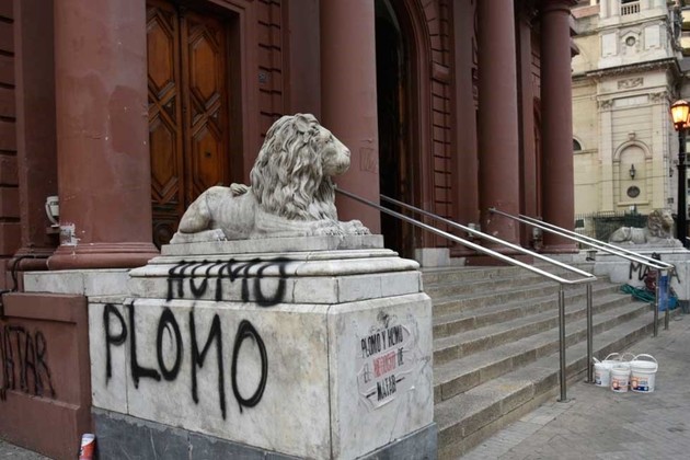 Además del inmueble municipal, la Catedral, la sede local de Gobernación y el Patio de la Madera fueron intervenidos con estas pintadas. El mensaje en cuestión es el mismo que apareció en el Barquito de Papel.