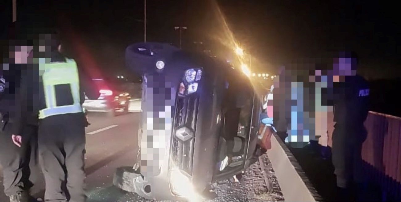 El vehículo quedó volcado con su frente orientado hacia el lado oeste, sobre el carril sur, obstruyendo el carril lento.
