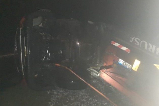 Arribados al lugar, los oficiales observaron sobre el sentido ascendente (mano a Córdoba) del km 30 de la RN 19 un camión volcado a escasos centímetros de la cinta asfáltica, por causas que se buscan determinar.