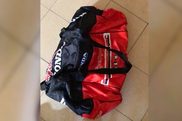 Este bolso le fue sustraído y dentro tenía gran cantidad de prendas de vestir especiales para motociclismo.