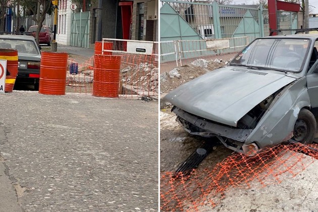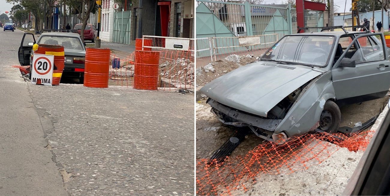 Sorpresa en el norte de la ciudad de Santa Fe cuando automovilistas vieron un auto metido en el interior de un gran hueco en la avenida Blas Parera.