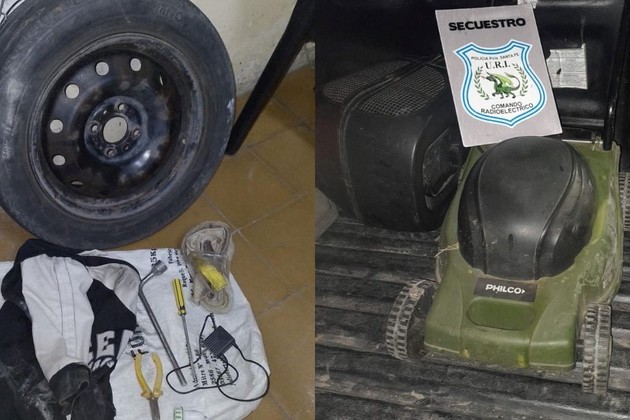 La primera de las intervenciones fue minutos antes de la medianoche del viernes, cuando la policía interceptó a un hombre de 34 años que caminaba por calle Freyre y Huergo arrastrando una máquina cortadora de pasto.