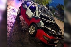 Al llegar al lugar, los agentes observaron un vehículo de la marca Fiat Punto, de color rojo, el que estaba envuelto en llamas. Dicho vehículo estaba a cargo de un hombre de 41 años.