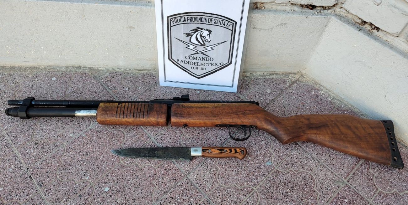 Efectivos recibieron un aviso vía radial por lo que se dirigieron de inmediato a Presidente Perón casi Chaco, debido a que un hombre estaría amenazando a su vecina con un arma de fuego. Con los recaudos ante la situación, los uniformados se dirigieron y constataron que el sujeto se encontraba armado y le dieron la voz de alto, luego apareció en escena una mujer con un cuchillo. De inmediato, los agentes lograron reducir a ambas personas y controlaron la situación. Luego, los efectivos secuestraron un rifle, un cuchillo y trasladaron el procedimiento a la sede policial correspondiente por jurisdicción.